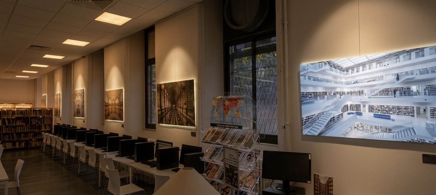 Nouvelle exposition consacrée à quelques-unes des plus belles bibliothèques et où les murs du rez-de-chaussée du CDI se transforment en fenêtres ouvertes sur le monde ! Elle propose aux plus curieux de découvrir des lieux emblématiques. De l’élégante modernité de la bibliothèque publique de Stuttgart à l’atmosphère hors du temps de l'ancienne bibliothèque du Trinity College, en passant par la prestigieuse bibliothèque du Congrès américain, qui abrite la plus grande collection de livres au monde, chaque photographie raconte une histoire. Arrêt sur image aussi sur la majestueuse bibliothèque de l'Abbaye d'Admont, joyau autrichien au coeur de la Styrie, ainsi que la raffinée bibliothèque impériale de la Galerie de Diane à Fontainebleau. Enfin, focus sur un détail de la BNF, avec ses célèbres tours où dialoguent transparence du verre et rigueur de l’acier.
